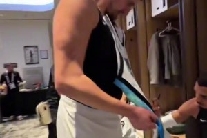 还是你会玩!约基奇让文班在他的球衣上画一个外星人~