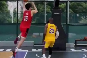 要是真的就牛了🤣球迷AI制作杨瀚森单挑打爆老詹!各种暴扣!