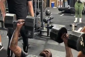 杰伦·格林用两个43公斤哑铃做卧推,有吧友能超过他吗?