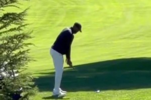 抽空过把瘾!在今日湖勇大战赛前,老詹还跑去打高尔夫了!