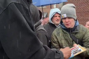 球迷在时代广场遇到库里夫妇!还和球迷聊天击拳~