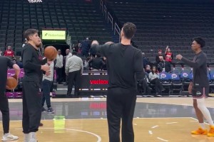 命中率好像不高😂近距离观摩申京&阿门练近筐抛投~
