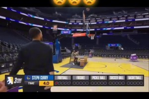你猜让库里分别用橄榄球/飞盘/匹克球/足球投三分会进几球?