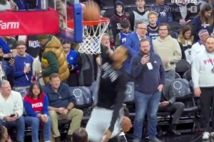 真外星人啊!文班此前热身秀胯下换手暴扣,给场边球迷看傻了!