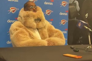 纽约这么冷嘛?SGA赛后依旧穿这身土豪貂皮大衣接受采访🙊