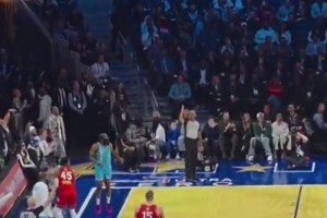 库里投出这个关键三分时,最佳观赏位置的登哥这个反应,太可爱了