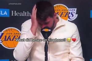 美媒晒东契奇此前发布会看手机动作&表情,这是看到了分手信息?