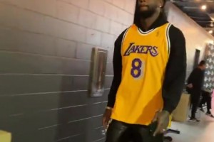 打湖人!兰德尔今天身穿科比球衣抵达湖人主场
