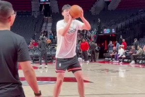 今天有机会上不🔥杨瀚森赛前热身练习远投活力满满~