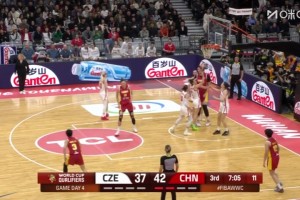 一览众山小!张子宇在篮下接球轻松放篮,对手只能举手目视😂