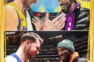 传承💜💛东契奇社媒转发洛杉矶街头自己和科比握手名场面壁画