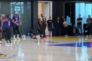 尴尬一幕!名场面:詹姆斯和浓眉此前队内训练比拼三分!