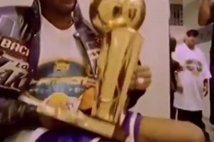 造就传世名画!当年湖人工作人员将奖杯交到科比怀中~