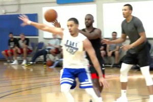 没想到还是上不了啊!里夫斯赛前放松热身~艾顿在旁练中投~