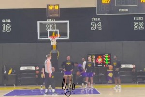 哟呵,你还有这手!八村在训练中秀了一记拉杆双手背扣!