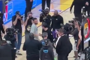记者真多!库里赛后与雷迪克、詹姆斯、布朗尼交谈表达敬意