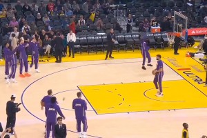湖人赛前抛球仪式确实挺有意思,科尔也看得津津有味