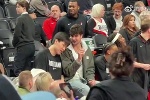 如今被大哥带进季后赛🥳杨瀚森此前用头靠阿夫迪亚肩膀😂