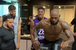 不输年轻人啊💦老詹踩动感单车,这身体状态真猛啊!