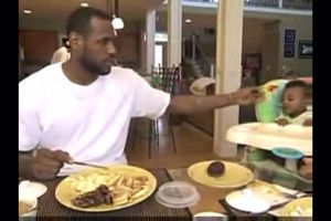 看看老詹此前给布朗尼喂饭视频!时间过得真快,如今父子都同队了