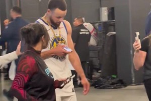 库里赛后戴上本场关键球员手机项链😎接下来还有一场得拼!