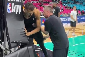 练得很认真!文班赛前热身备战自己第一场季后赛
