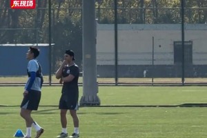申花对阵云南赛前,陈晋一单独训练,朱辰杰戴面罩分在主力一组