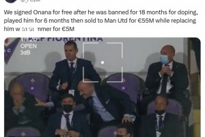 窃喜😐,国米博主:免签奥纳纳5500万卖给曼联又500万签下索默