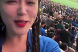于汉超打进扳平进球,看台上的申花美女球迷可激动坏了!
