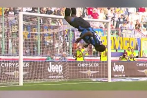 意大利U15后卫接回传时滑倒,沙明得球连续扣球抽射破门!