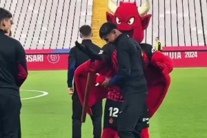 原来是收礼了😂赛前吉祥物送亚马尔玩具,赛中亚马尔单刀没进