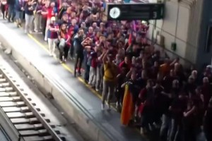 皇马巴萨球迷前往塞维利亚,巴萨球迷激情唱跳,皇马球迷异常安静