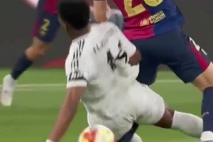 这动作很危险!琼阿梅尼剪刀脚犯规染黄,奥尔莫痛苦倒地