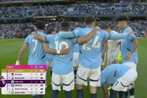 真假?女球迷现场观战,手机比分直播APP提前得知曼城进球