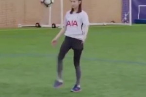 江疏影那年去热刺参观时看着真可爱~还穿着小黑袜颠球🥰