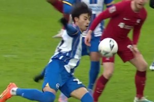 名场面回顾❗三笘薫昔日绝杀利物浦,空中连停带过技惊四座