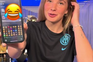 欢迎金发小姐姐❤,国米女队新援Karolina在冠军陈列室接受采访