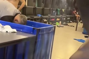 巴黎对阵拜仁的比赛期间,竟然有一位球迷在现场睡觉!😅