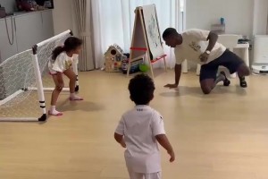 愉快的时光!国安外援法比奥晒与儿女家里踢足球画面❤