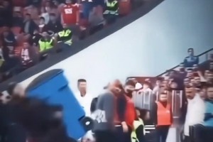 罕见暴力一幕!萨拉戈萨门将不满主裁红牌判罚,重拳击倒对方后卫