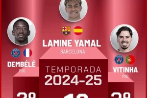 马卡评上赛季百大球星:亚马尔力压登贝莱,C罗30&梅西49