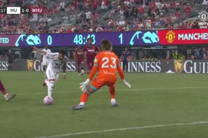 这球没打进啊?B费单刀球推射被阿雷奥拉挡出!