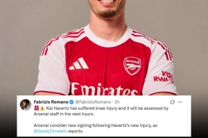 增肌太猛?罗马诺:哈弗茨膝盖受伤,阿森纳考虑引援