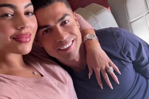 开眼了!乔治娜在私人飞机上展示20克拉大钻戒
