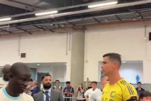 不是很熟?坎特从C罗旁边经过,没有互动😂