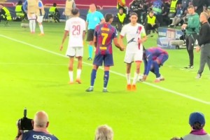 老油条😅!弗里克捡球给巴尔德,被阿什拉夫路过将球打落