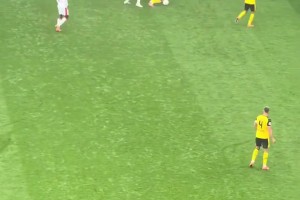 太痛了!沃特金斯包抄空门没有打进,大腿直接撞到立柱痛苦倒地!