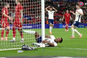 太痛了!沃特金斯包抄空门没有打进,大腿直接撞到立柱痛苦倒地!