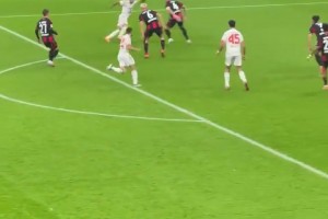 这球真的太不讲理了!场边视角看迪亚斯禁区内爆射近角破门!