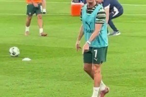 有难度的!热身时C罗向球迷展示高空停球,稳稳停下 小装一波😎